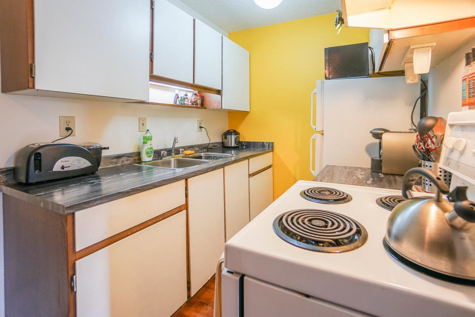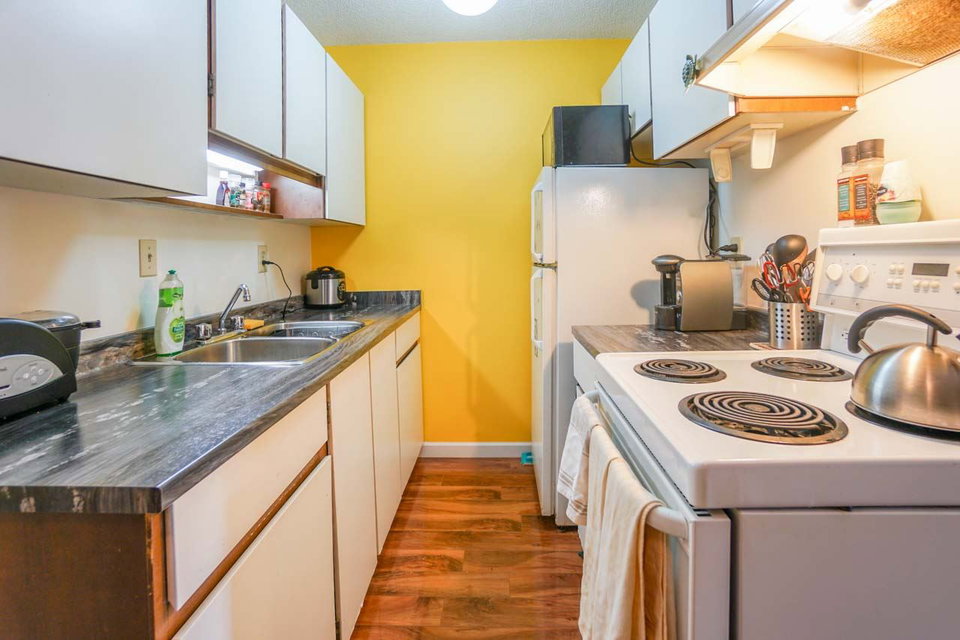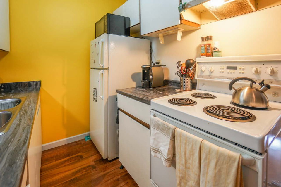 WOW! Completely renovated 1 bedroom condo in the heart of Port Coquitlam. Central location close to public transit, West Coast Express, recreation and shopping. Open layout with private South facing patio. Renovated with hardwood floors, updated kitchen and brand new counter tops. Call today for your private showing.