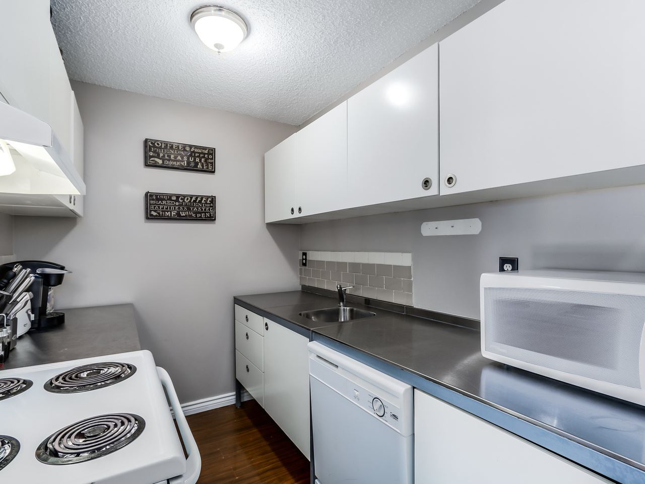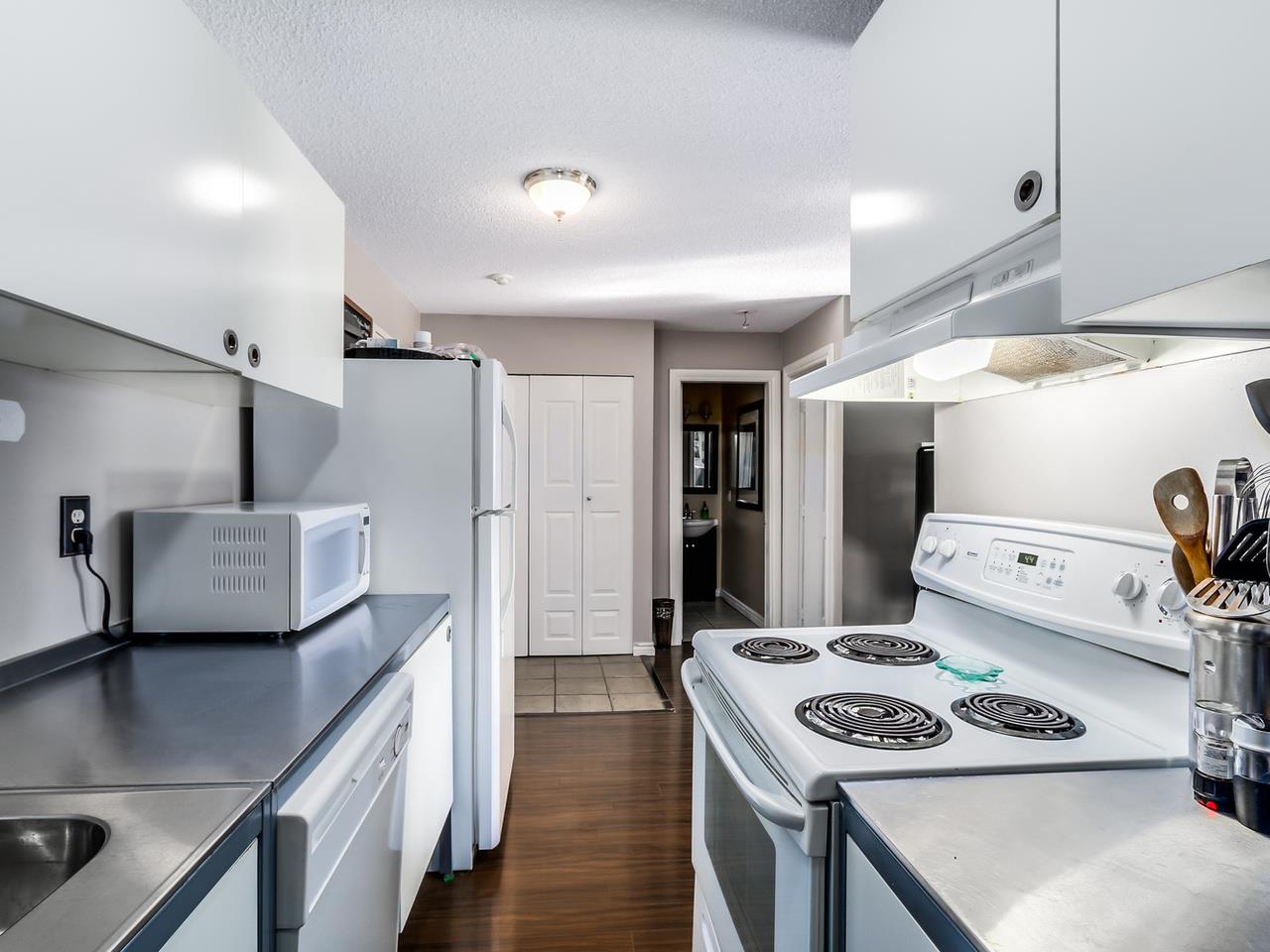 WOW! Completely renovated 1 bedroom condo in the heart of Port Coquitlam. Central location close to public transit, West Coast Express, recreation and shopping. Open layout with private South facing patio. Renovated with hardwood floors, tiled entrance and stainless kitchen countertops. Call today for your private showing.