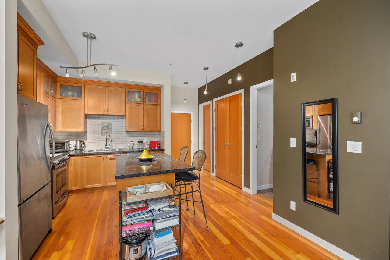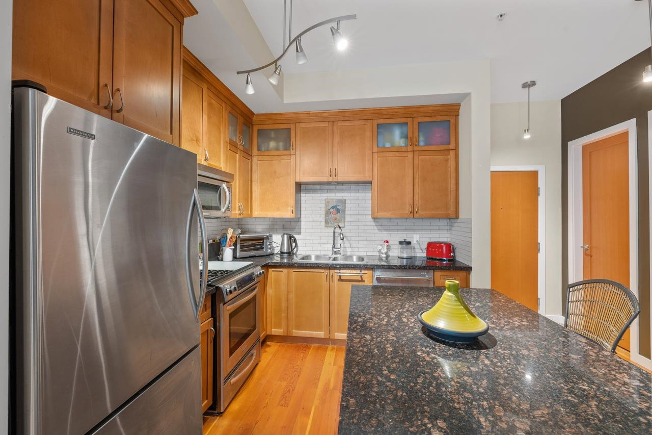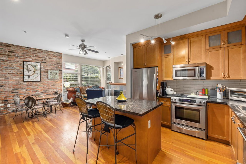 Gorgeous corner unit with access to the river walk. Walk your dog, privacy with large out door space to enjoy. The unit comes with 2 bedroom 2 bathrooms. Features … reclaimed fir flooring, brick wall, stainless steel appliance …. over height ceilings. Great community with river walk trail, beach on the north arm of river, plans at City of New West for the pedestrian bridge to the quay and so much more.