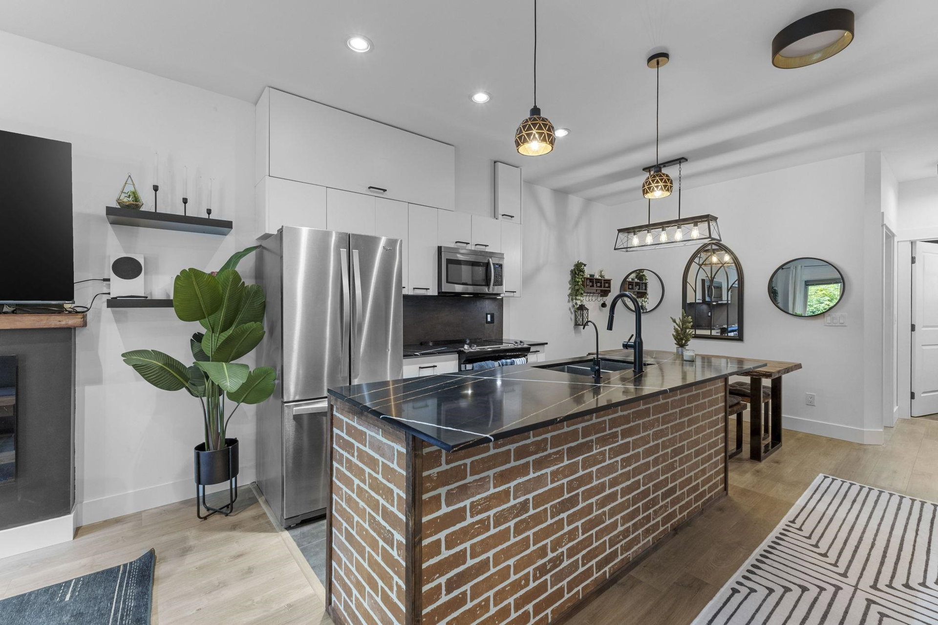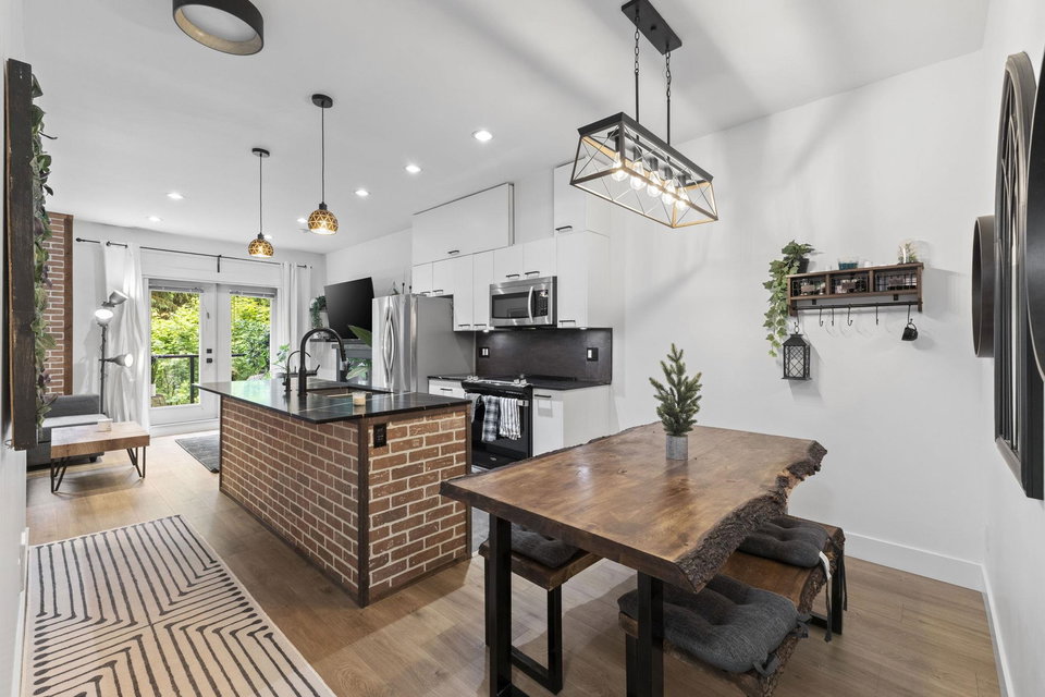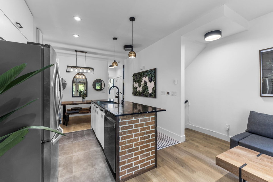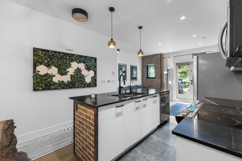 Stylish, updated, and perfectly located. This bright and welcoming townhome has been professionally renovated throughout with hardwood floors, quartz counters, stainless steel appliances, and a spacious open layout. Upstairs includes a large nook that’s perfect for a home office, nursery, or reading space. Enjoy your own private backyard with direct access to peaceful green space, ideal for relaxing, playing, or entertaining. The tandem garage offers flexible space for storage or a small gym setup. Located in a quiet, family-friendly complex with a well-run strata. Just minutes to top schools, transit, Suter Brook, Newport Village, Rocky Point, and Brewery Row.
