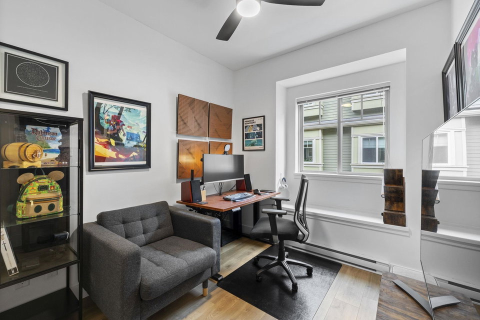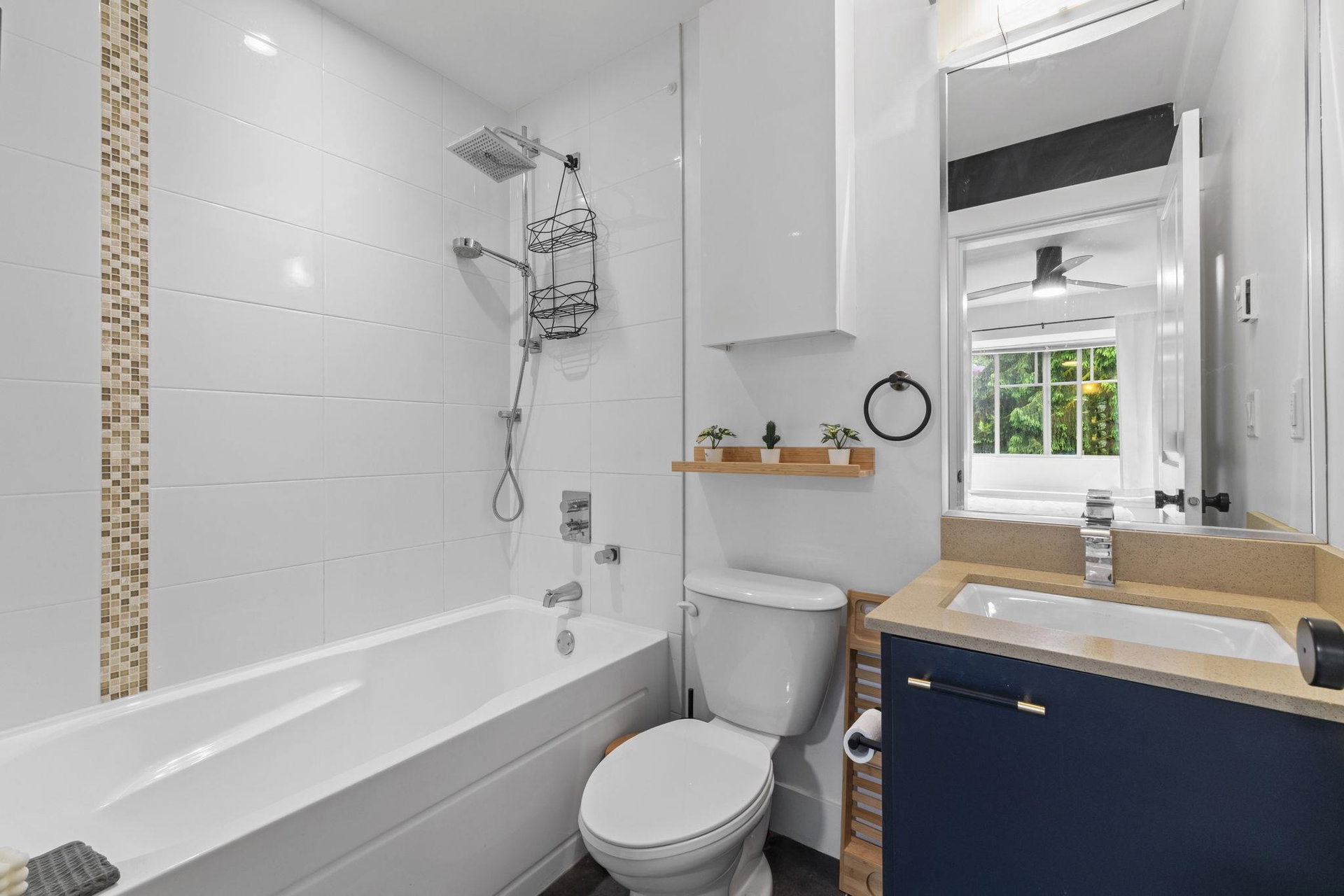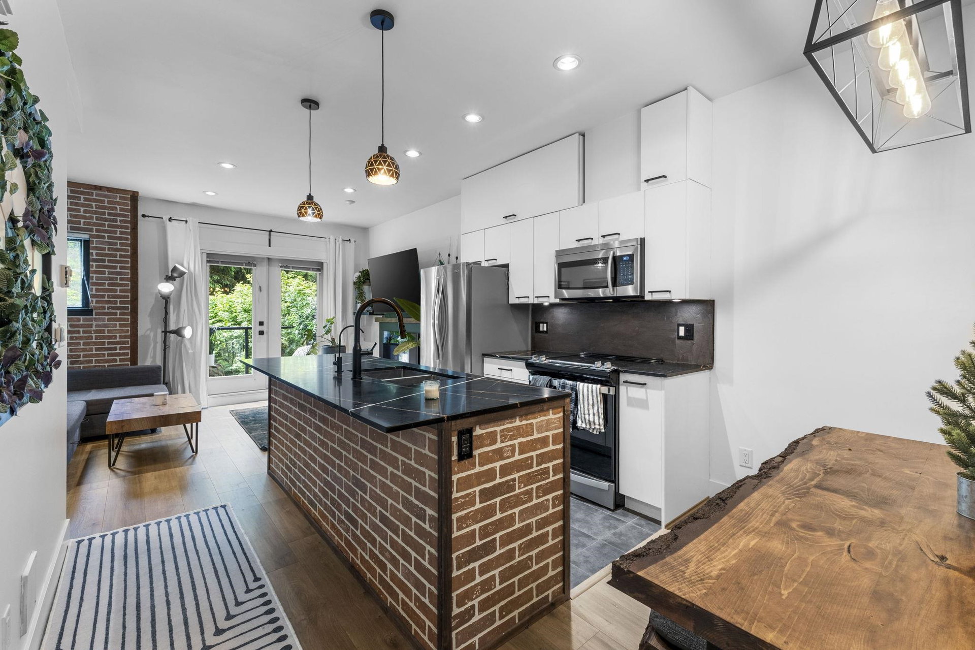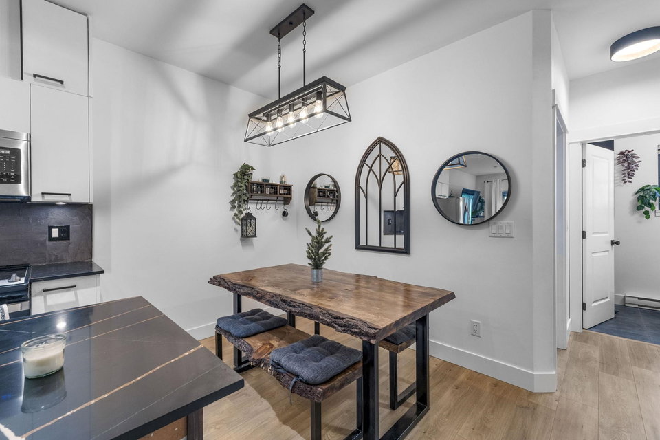 Stylish, updated, and perfectly located. This bright and welcoming townhome has been professionally renovated throughout with hardwood floors, quartz counters, stainless steel appliances, and a spacious open layout. Upstairs includes a large nook that’s perfect for a home office, nursery, or reading space. Enjoy your own private backyard with direct access to peaceful green space, ideal for relaxing, playing, or entertaining. The tandem garage offers flexible space for storage or a small gym setup. Located in a quiet, family-friendly complex with a well-run strata. Just minutes to top schools, transit, Suter Brook, Newport Village, Rocky Point, and Brewery Row.