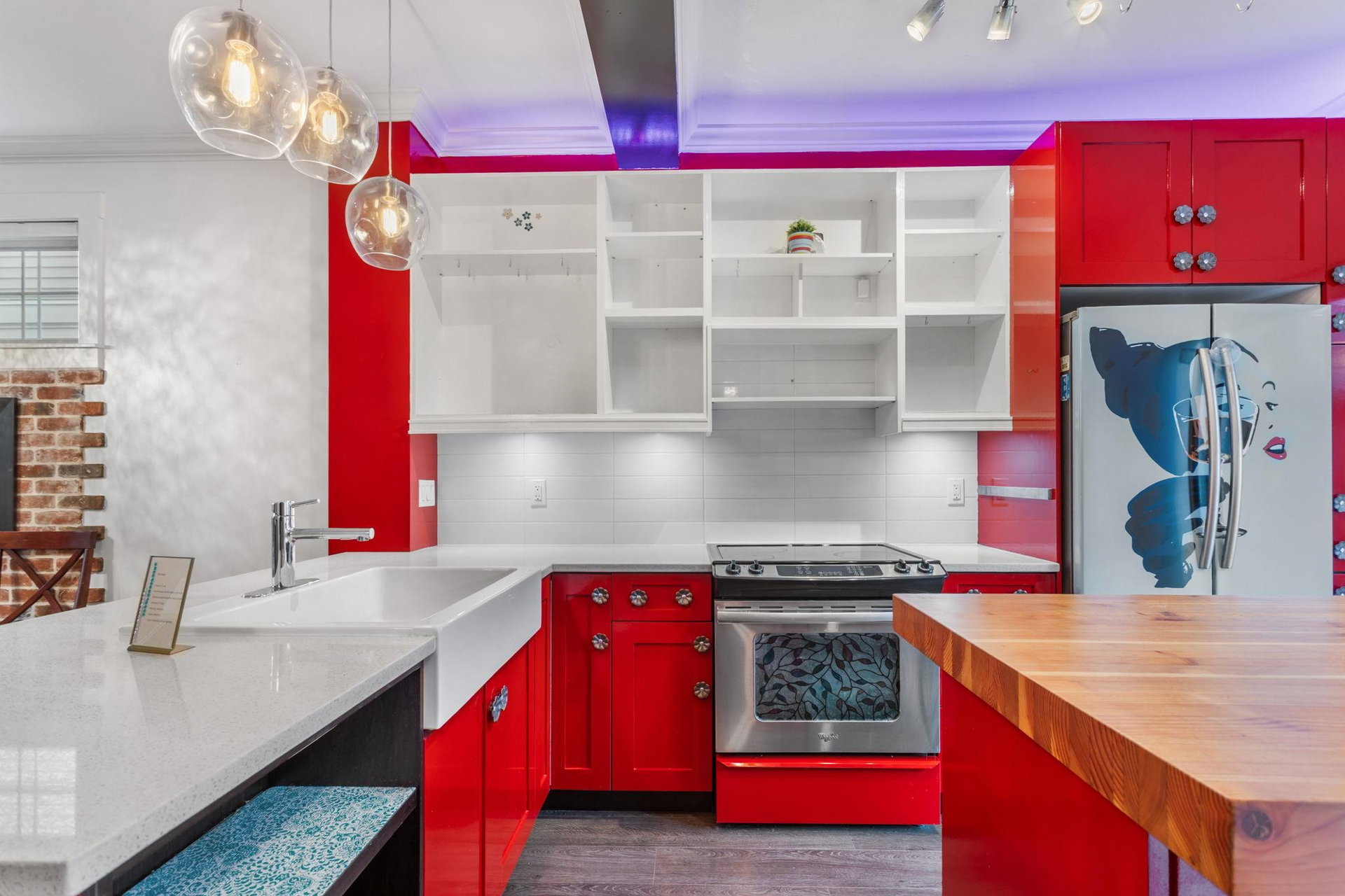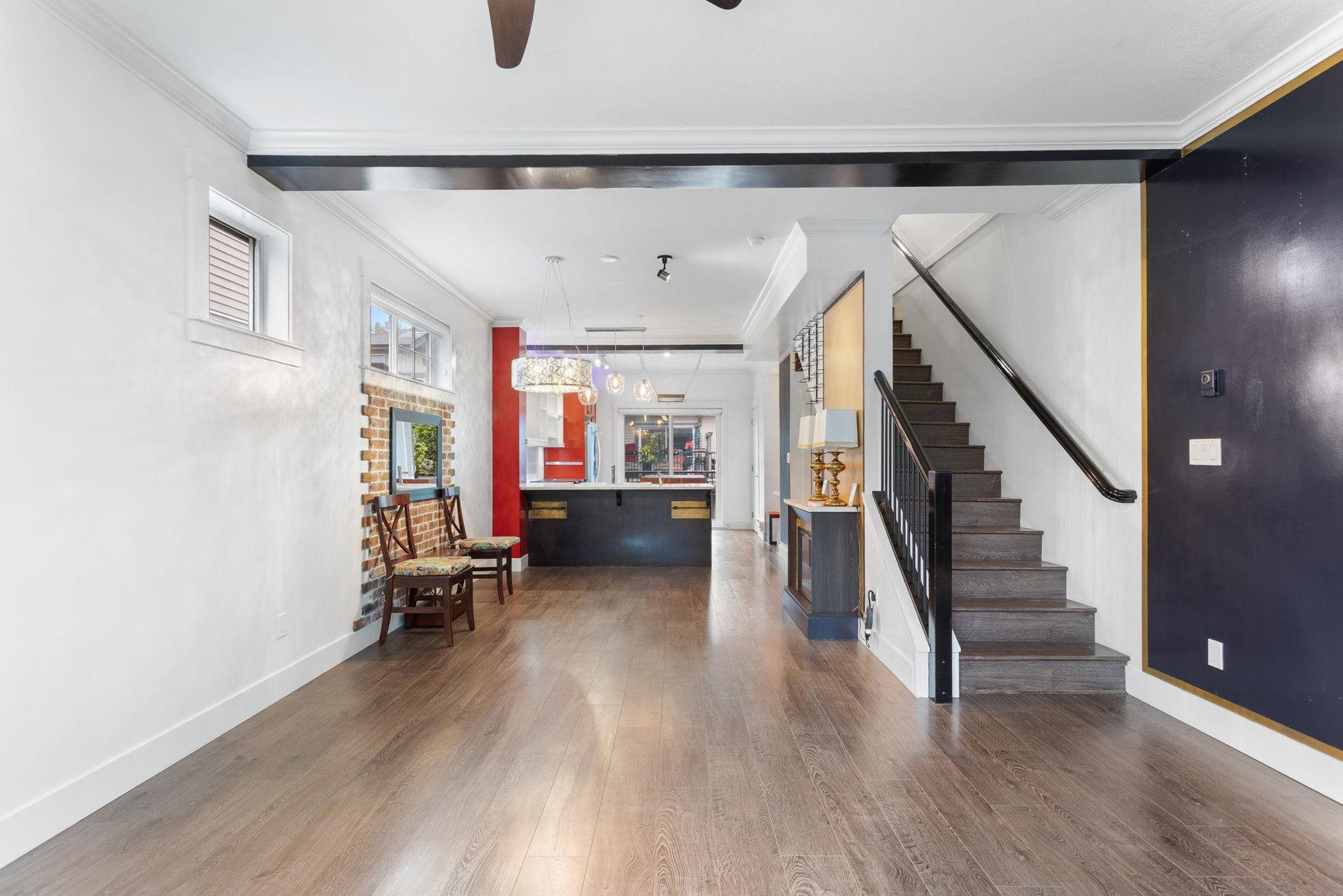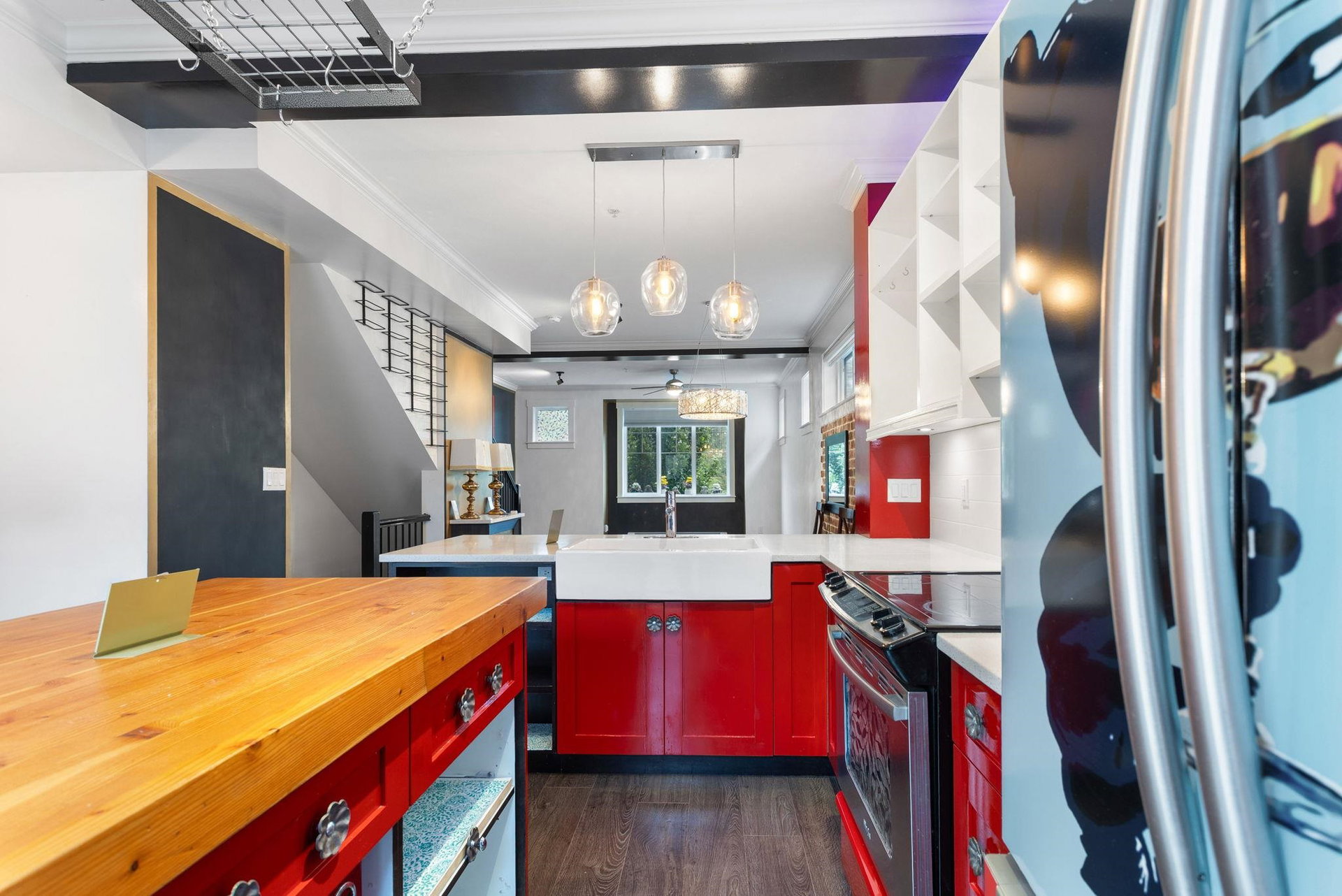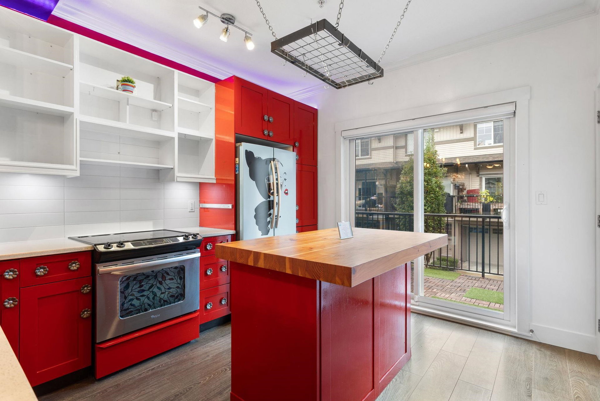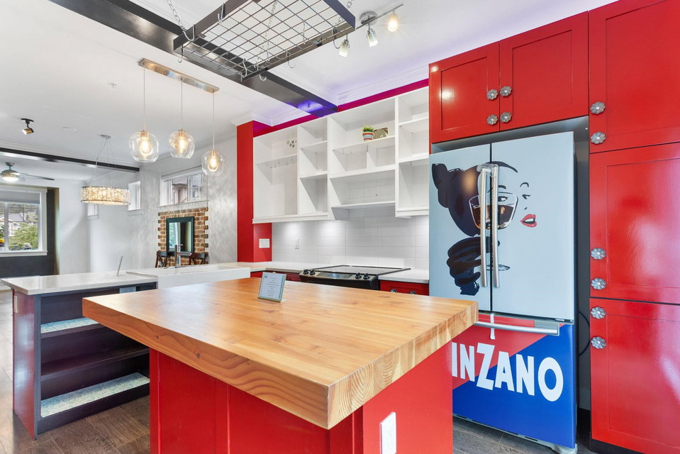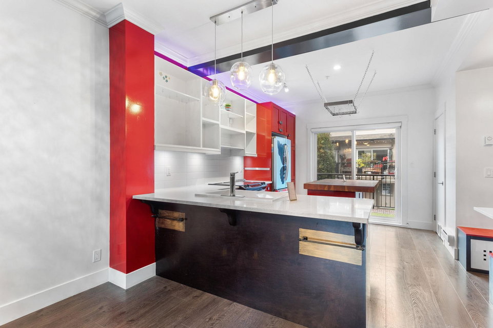 Welcome to this end-unit townhome at Albion Station, featuring upgraded finishes throughout. Enjoy 9ft ceilings, a butcher block island, custom fridge, pull-out shelving, and a stunning brick wall. The Saltillo-tiled entry leads to a primary bedroom with California Closets and a guest room with a Murphy bed. The multi-flex space includes surround sound, smart TV, bar fridge, and steel counters. Outside, unwind on private decks surrounded by lush gardens. Located at the front of the complex, Albion Station offers a close-knit community where neighbors feel like family.