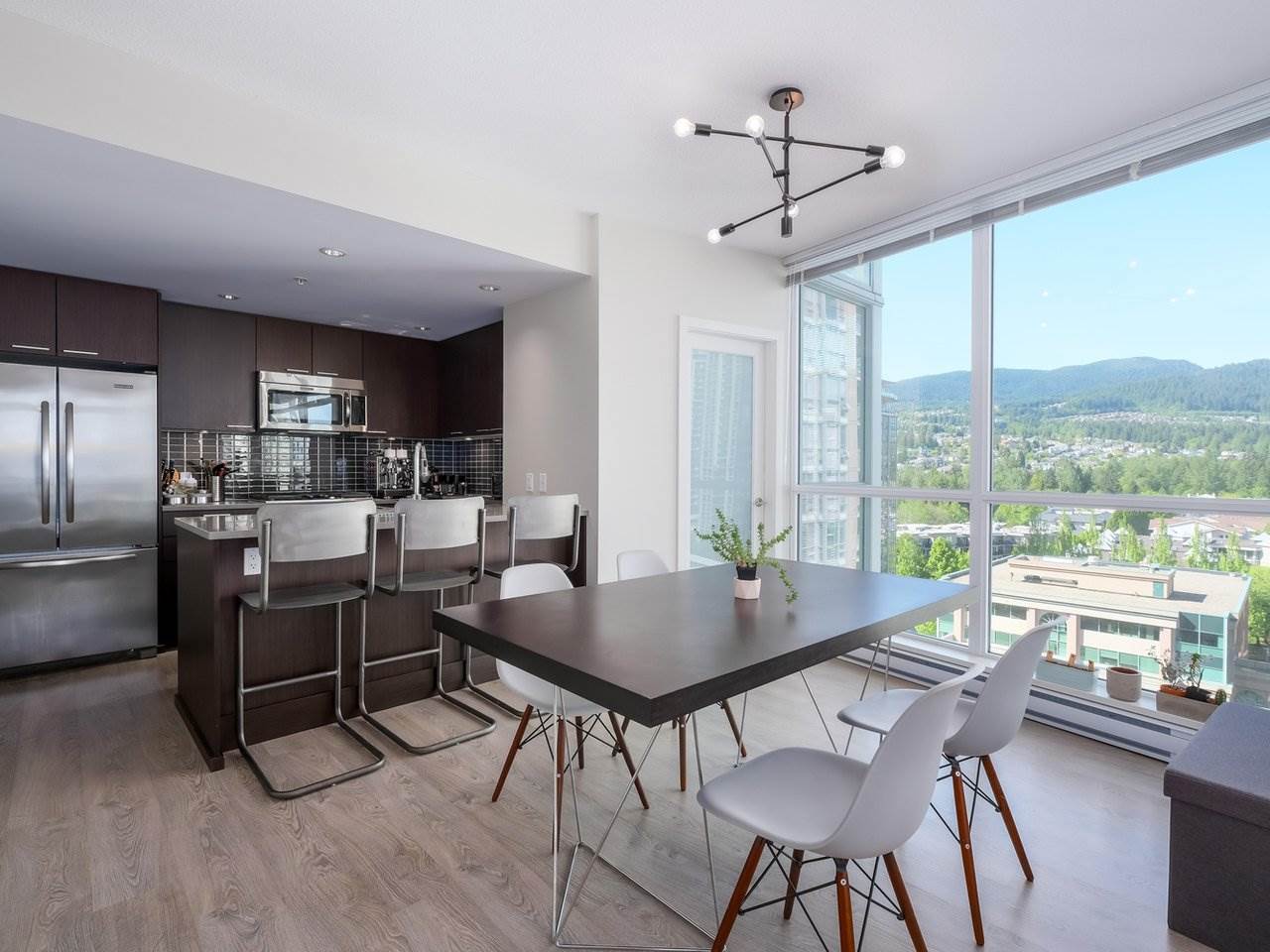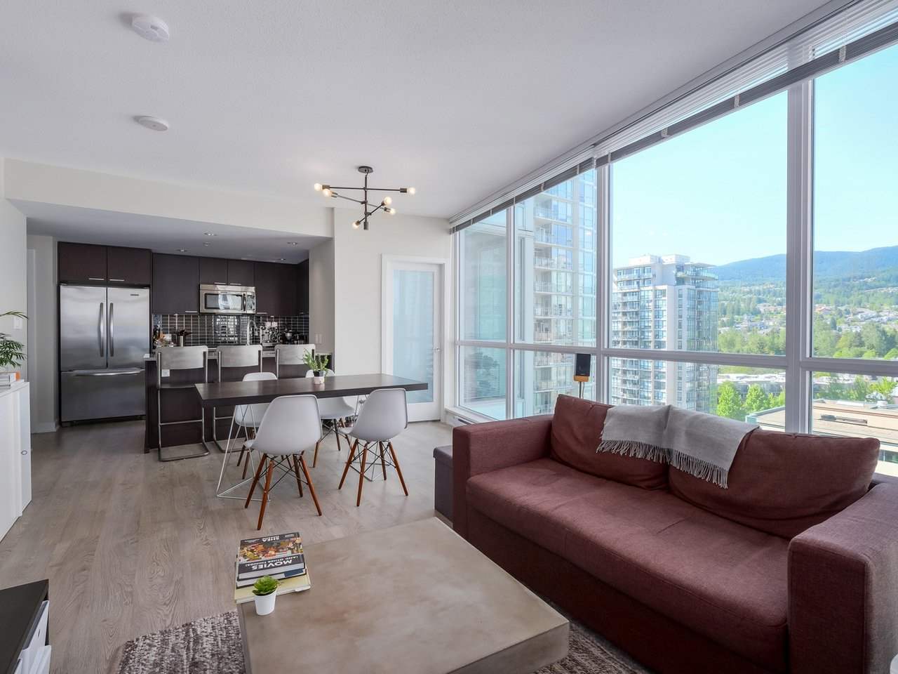 Welcome to Grand Central 3! This stunning unit has been immaculately kept with floor-to ceiling windows and breathtaking panoramic mountain views. Kitchen features new stainless-steel appliances and warm wooden finishes. This 1 bed 1 bath also includes one parking stall and a large storage locker. Comprehensive 2-5-10 warranty still in effect. Steps away from Coquitlam Centre mall, Coquitlam Station, public library, Henderson mall, schools of all levels, Douglas college, Town Centre Park and Lafarge Lake. Amenities include 2,500 Sqft fully equipped fitness facility, swimming pool & hot tubs, lounge, and party room. Virtual tour available!