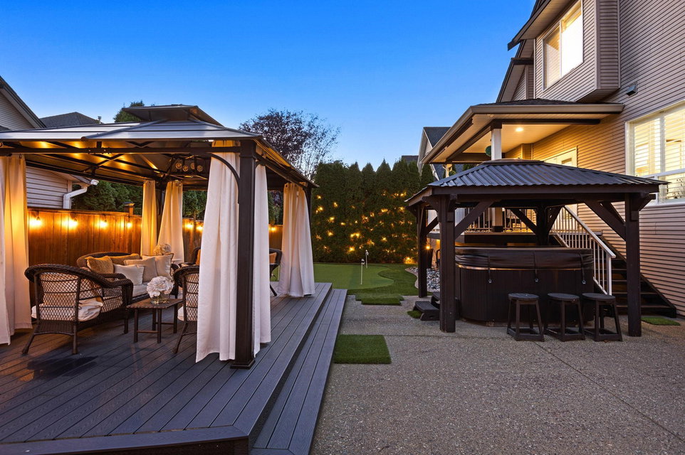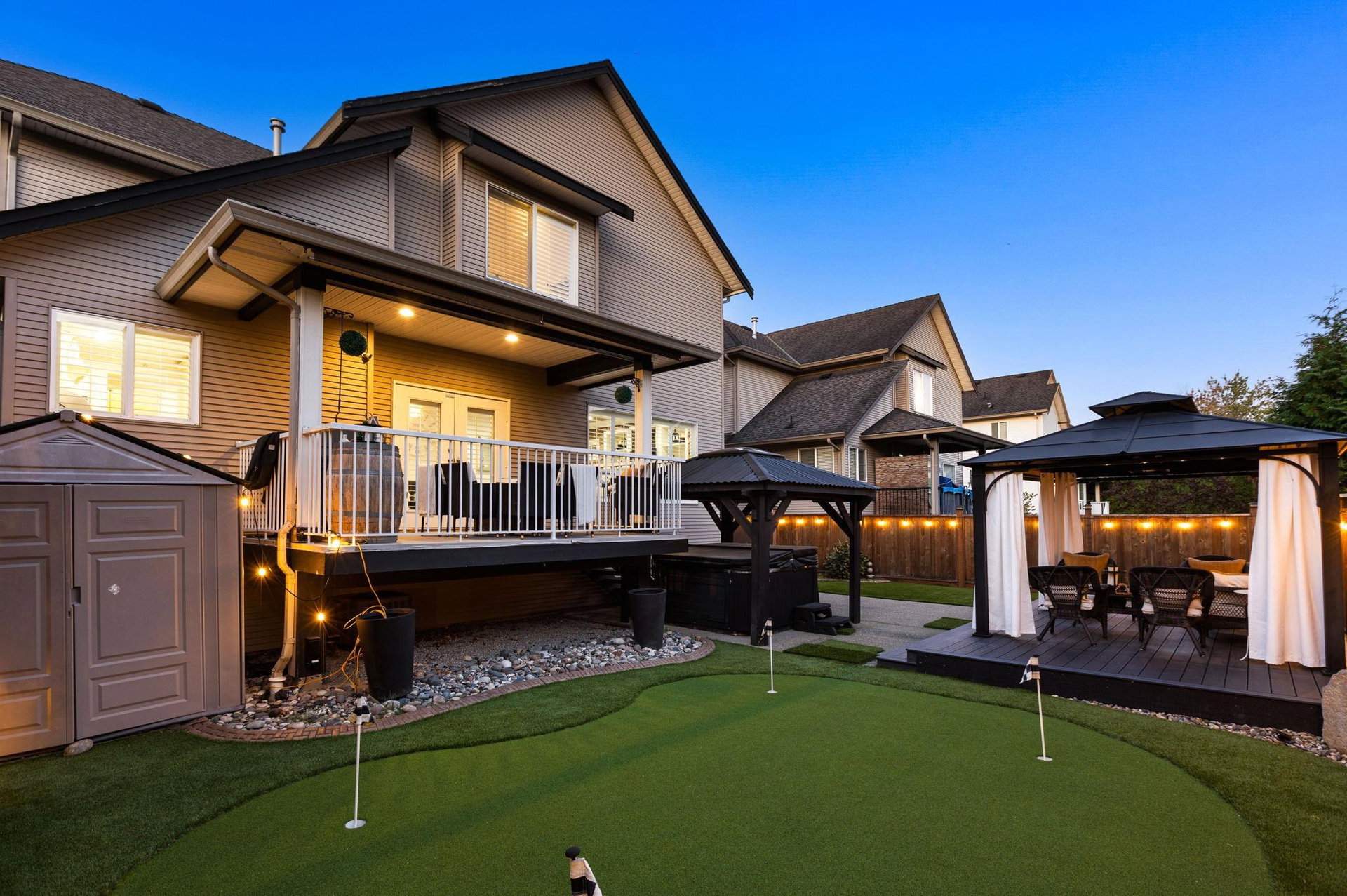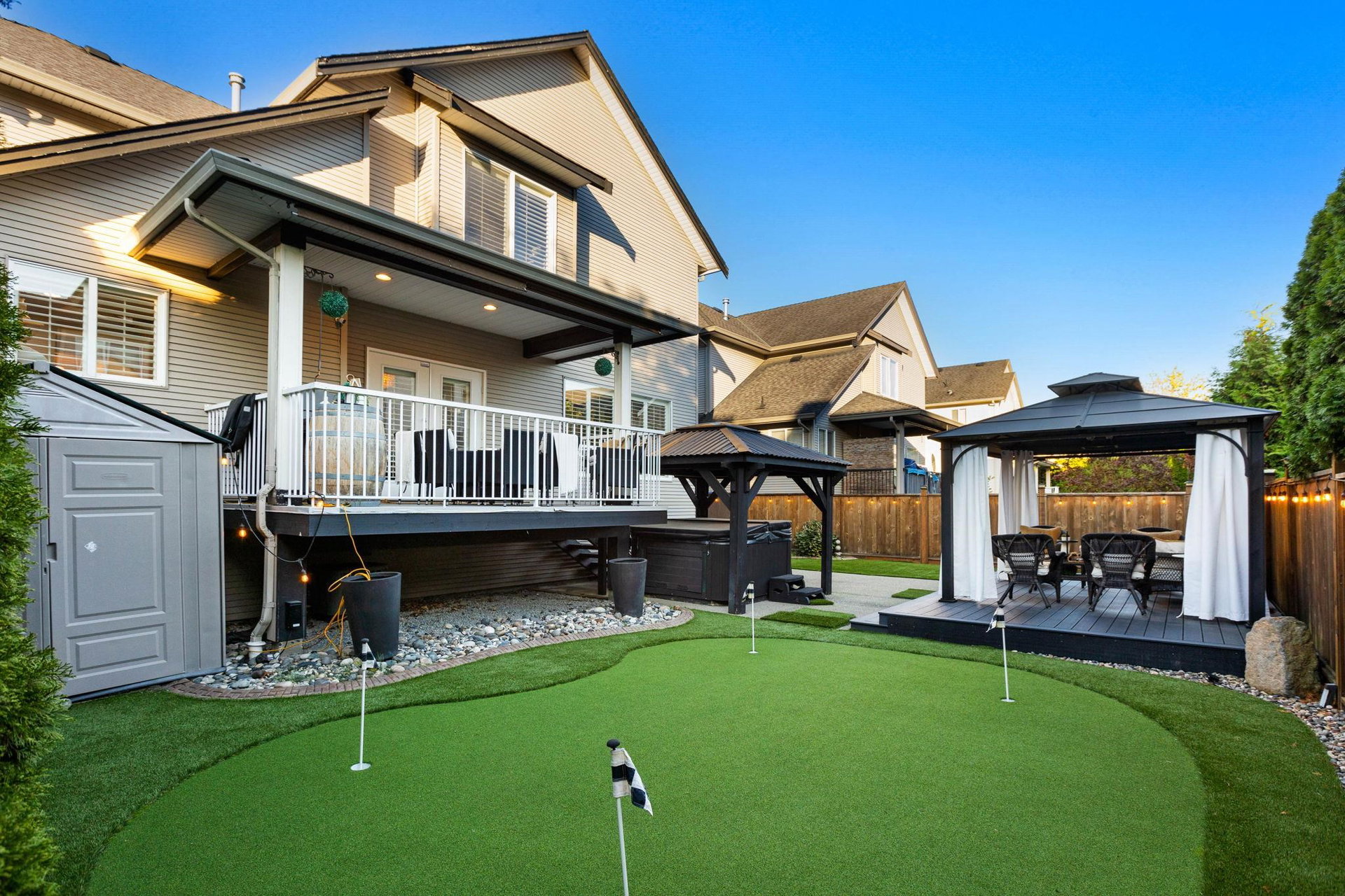 Rare opportunity to own in Pitt Meadows’ most coveted neighbourhoods – Bonson Landing. This bright and spacious home on oversized lot (with excellent curb appeal) features newly installed quartz countertops, waterproof industrial hardwood floors and two beautiful gas fireplaces. Thoughtful details throughout the home include a soaking sink in your laundry room, double sinks in your ensuite bathroom, and a large media room which can be easily converted into an additional bedroom, home office, or gym. The breath-taking outdoor space includes a putting green, a large covered seating area with composite decking, artificial turf, and a covered hot tub. Unbeatable location! Just steps from the West Coast Express, Osprey Village, highly rated schools, shopping, recreation facilities and much more. Beautiful gem in the heart of Pitt Meadows – book your private tour today!