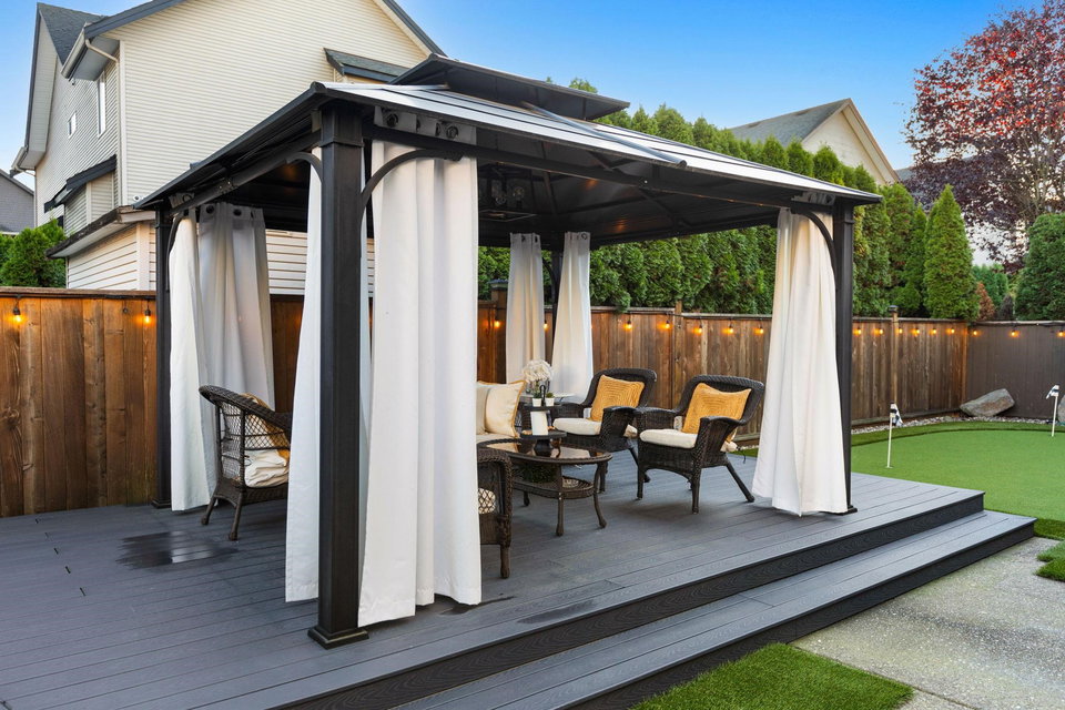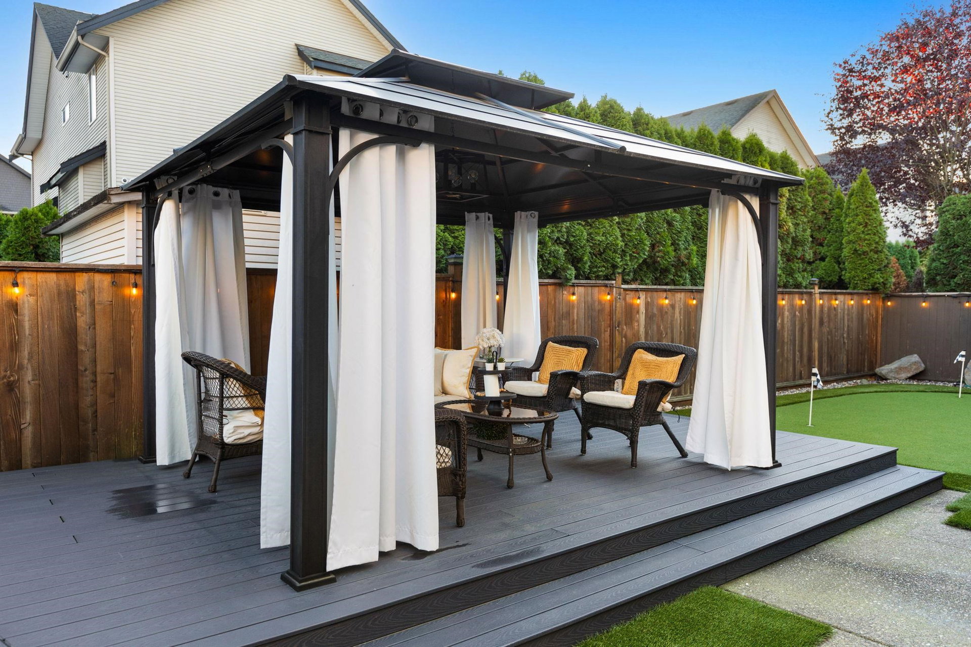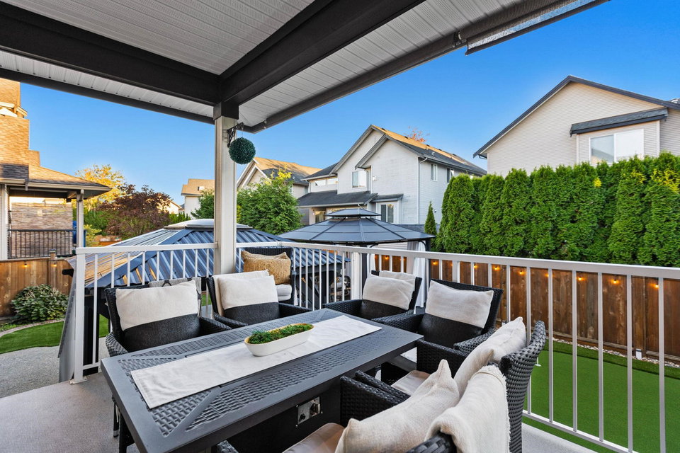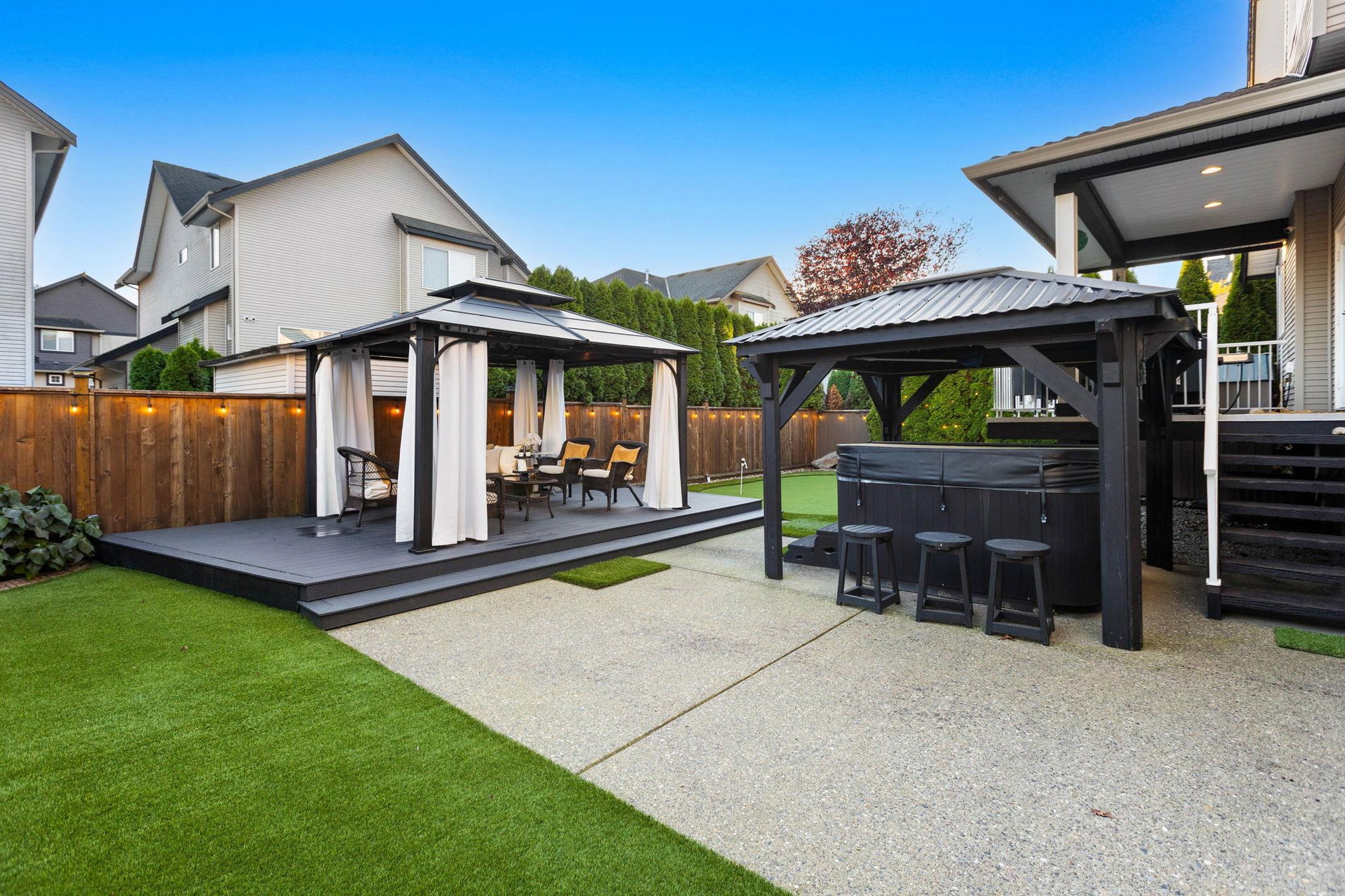 Rare opportunity to own in Pitt Meadows’ most coveted neighbourhoods – Bonson Landing. This bright and spacious home on oversized lot (with excellent curb appeal) features newly installed quartz countertops, waterproof industrial hardwood floors and two beautiful gas fireplaces. Thoughtful details throughout the home include a soaking sink in your laundry room, double sinks in your ensuite bathroom, and a large media room which can be easily converted into an additional bedroom, home office, or gym. The breath-taking outdoor space includes a putting green, a large covered seating area with composite decking, artificial turf, and a covered hot tub. Unbeatable location! Just steps from the West Coast Express, Osprey Village, highly rated schools, shopping, recreation facilities and much more. Beautiful gem in the heart of Pitt Meadows – book your private tour today!