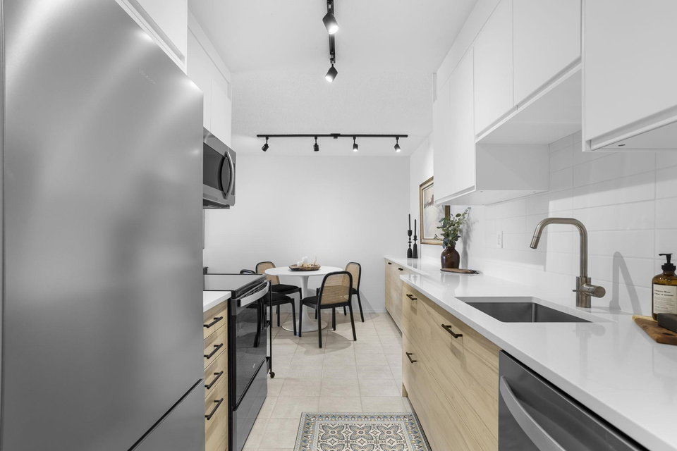 Bright and beautifully updated condo in the heart of Downtown New Westminster. Features solid oak flooring freshly refinished, a brand-new kitchen with new appliances, updated bathroom, new wool carpets, fresh paint, and stylish lighting throughout. Enjoy a large, private south-facing balcony perfect for relaxing or entertaining. Unbeatable location steps to Douglas College, Tipperary Park, shopping, dining, and transit. Rentals and pets allowed — ideal for first-time buyers or investors.