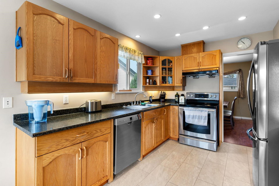 Meticulously maintained home that offers a blend of modern upgrades and practical design. Recent updates include new windows, gutters, fascia boards, roof, a 50-gallon hot water tank, an upgraded furnace with thermostat and exchanger ready for future central A/C, and a full transition to Pex plumbing. The bright, south-facing kitchen and adjoining family room provide a welcoming space for daily living, with access to a patio and beautifully landscaped backyard. The main floor also features a spacious rec room and a bedroom with an ensuite, perfect for use as an in-law suite with a separate entry. Additional conveniences include RV parking and proximity to Alexander Robinson Elementary, just one block away.