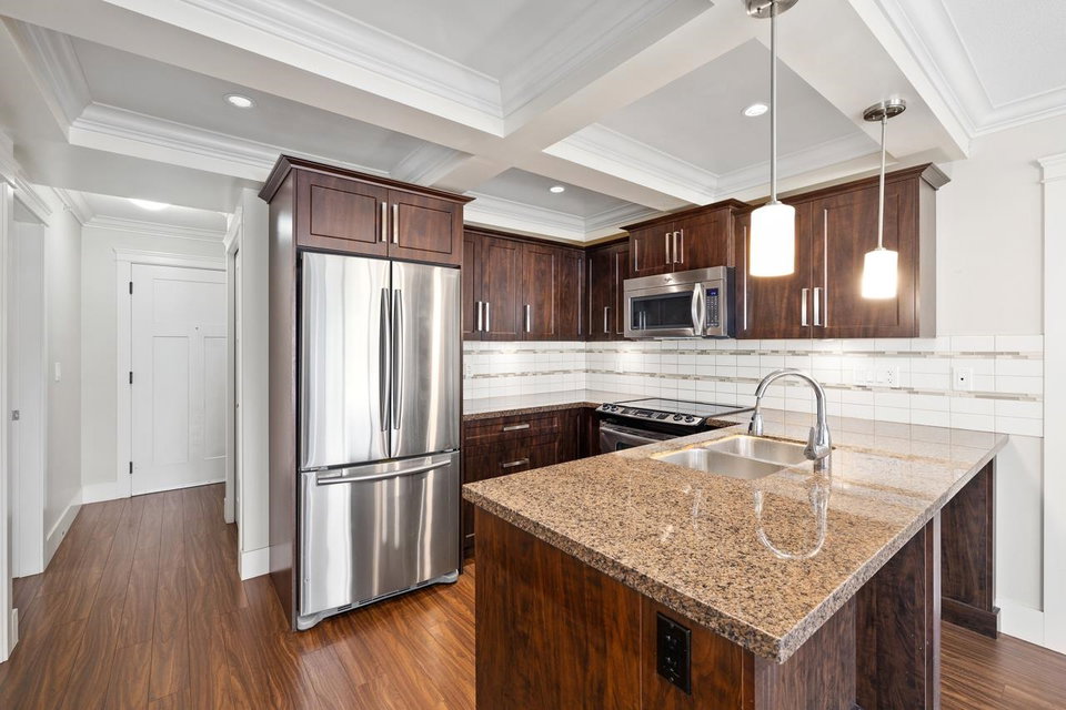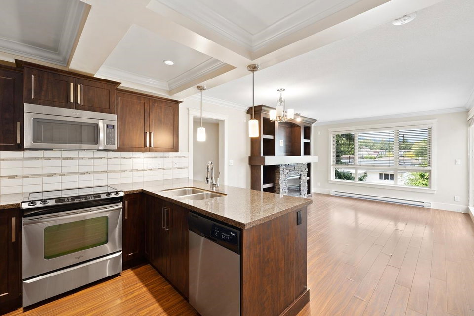 Bright and open with mountain views! Welcome to the Residences on Shaughnessy. Quiet corner unit features a large den – perfect for a home office or nursery. Large master bedroom with ensuite and tons of closet space. Beautiful kitchen with stainless steel appliances. Walking distance to parks, Coquitlam River, walking trails, restaurants and much more. BONUS: Comes with 2 parking and 1 storage locker.