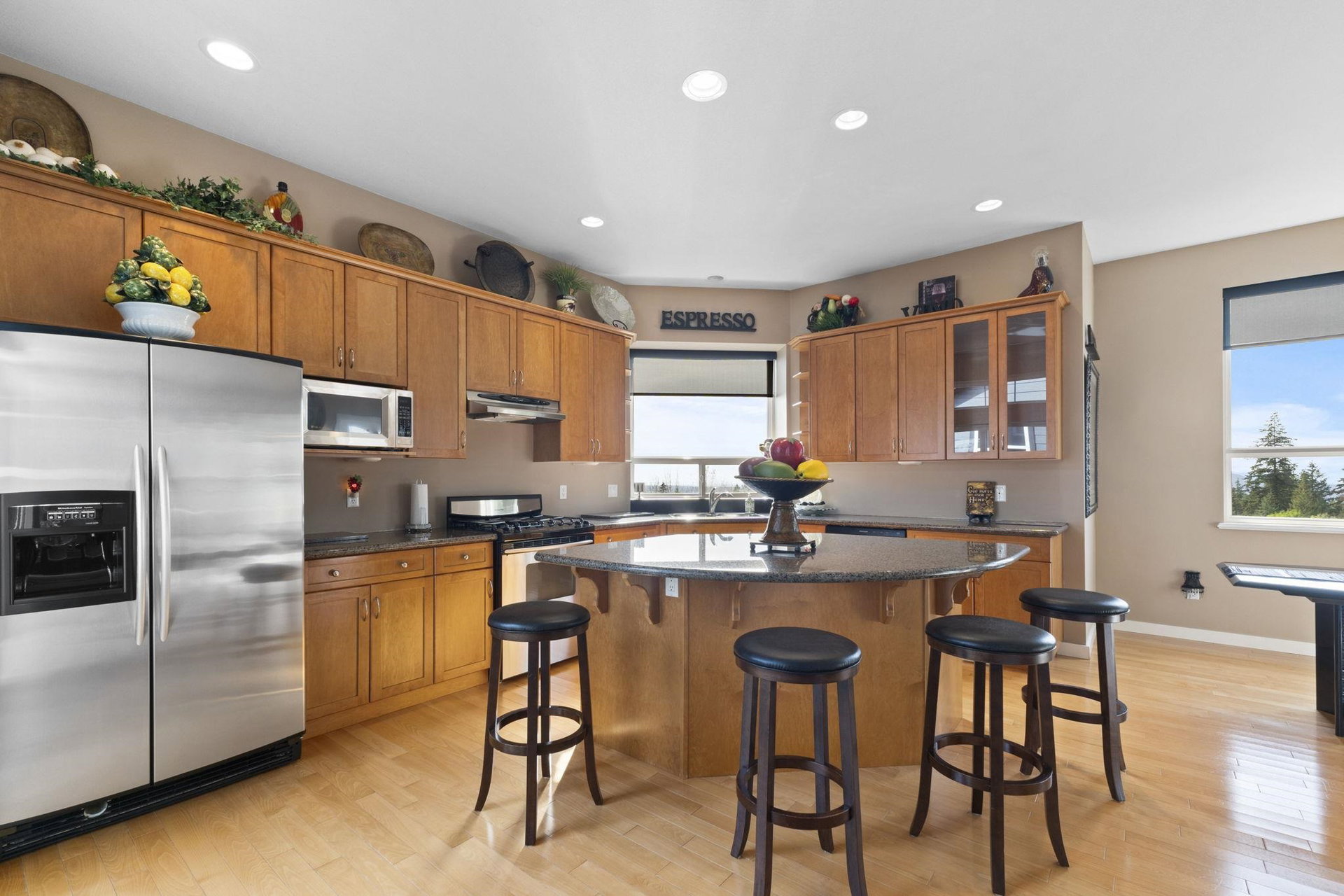 This exceptional Stoneridge Home residence is the largest on Heritage Woods’ most prestigious streets, offering spectacular views from every floor. The main level features an open layout leading to a covered deck with outdoor dining. Upstairs, the grand master suite boasts a spa-inspired ensuite with double sinks and stunning mountain views. The walkout basement offers a spacious recreation area with suite potential. The beautifully landscaped backyard showcases over $200k in upgrades, including artificial turf and a covered hot tub. Additional highlights include a backup generator, irrigation system, AC, central vacuum, intercom, and a heated, finished garage with epoxy floors.