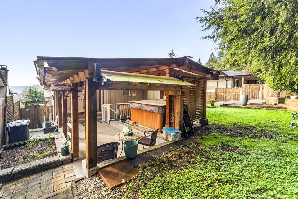 Tucked into a quiet cul-de-sac in Coquitlam East, this well-cared-for home sits on a 7,810 sq ft lot with 55 ft frontage, partial water views, and a private, tree-lined backyard. The interior offers bright, comfortable living spaces, generous principal rooms, and a functional kitchen with solid wooden cabinetry and ample storage. The basement entry layout provides excellent flexibility with additional living and recreation space ideal for families, guests, or home office use. Outdoors, enjoy a level yard, mature landscaping, and a covered hot tub area that extends year-round usability. Double garage, abundant parking, and close proximity to schools, parks, transit, and major commuter routes complete this well-rounded offering in a long-established neighbourhood.