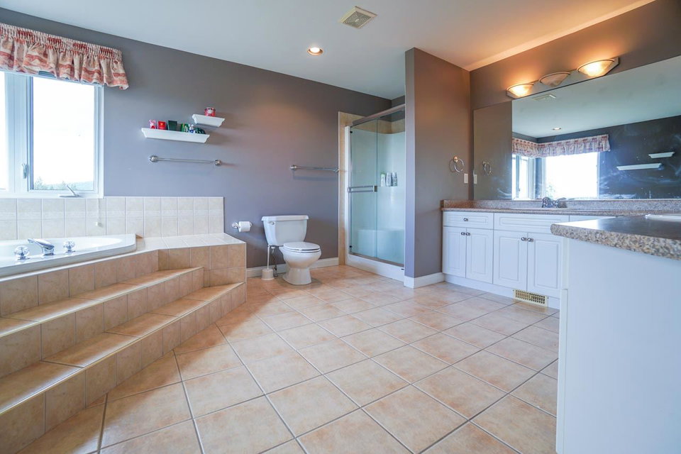 SUPERB RIVER & VALLEY VIEWS! Loads of large windows and huge, abundant sundecks let you soak in the great views from the south-facing back of this grand home. There’s a triple garage, room for and RV. The yard is a massive .44 acre, set well back from the road. The 2 storey plus full basement home has 5970 sq ft. The basement has a finished recroom and bathroom. There are plumbing rough-ins, and 10′ ceilings. The main floor has a raised panel oak kitchen with granite counters. The main has 2 bedrooms and a full bath. Upstairs are 4 bedrooms, an office area, and a huge ensuite with fireplace! A/C, concrete tile roof, 2×6 construction, 200 amp panel and 100 amp subpanel. 2 hotwater tanks work in tandem. Great home.