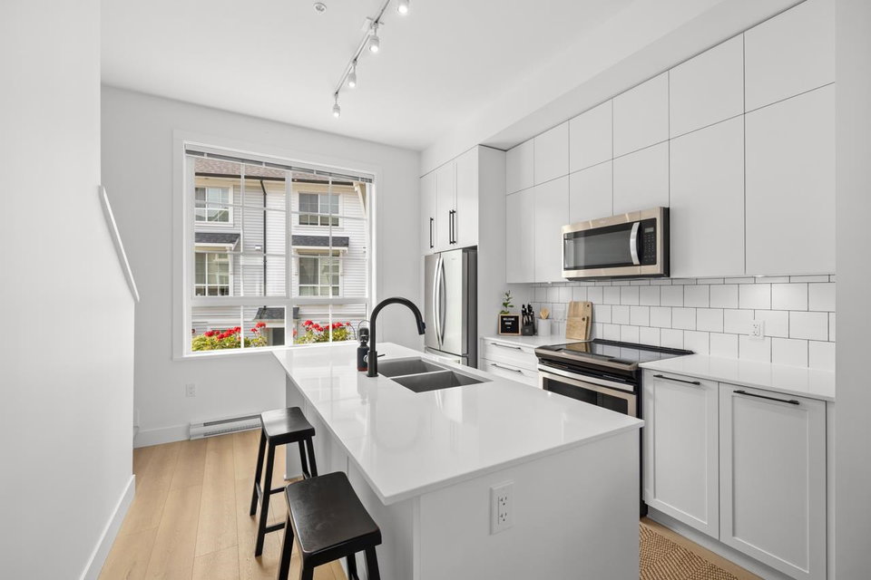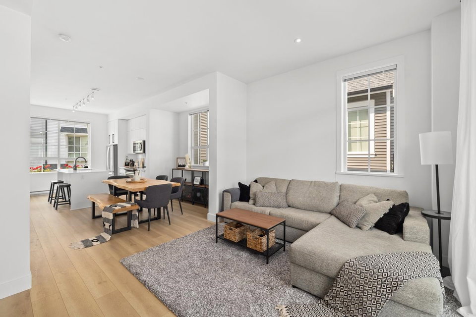 This exquisite Mosaic-built townhouse, only 2 years young, is nestled in a peaceful family oriented community. As you step inside, you’ll be greeted by the impressive 10 ft ceilings on the main floor, which allow natural light to flood the space, illuminating every corner. The open-concept layout is perfect for hosting gatherings, with a large dining space, kitchen island, living space and big balcony. The modern kitchen is a chef’s dream, complete with all the essential amenities and sleek finishes. This end unit boasts not only style but also practicality, with a double garage that offers ample storage space for all your belongings. No need to worry about clutter here! Situated in a highly sought-after location, Osprey Village, schools, bus stops, shopping centers, picturesque trails, and charming parks are all within reach. Additionally, the West Coast Express is just a stone’s throw away, whisking you to Vancouver Waterfront Station in under an hour, making commuting a breeze.