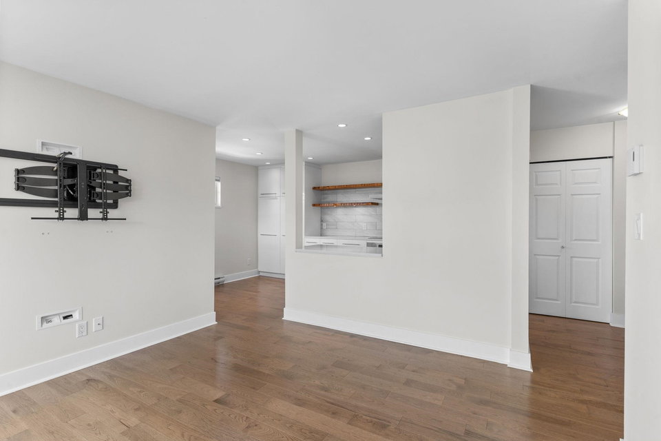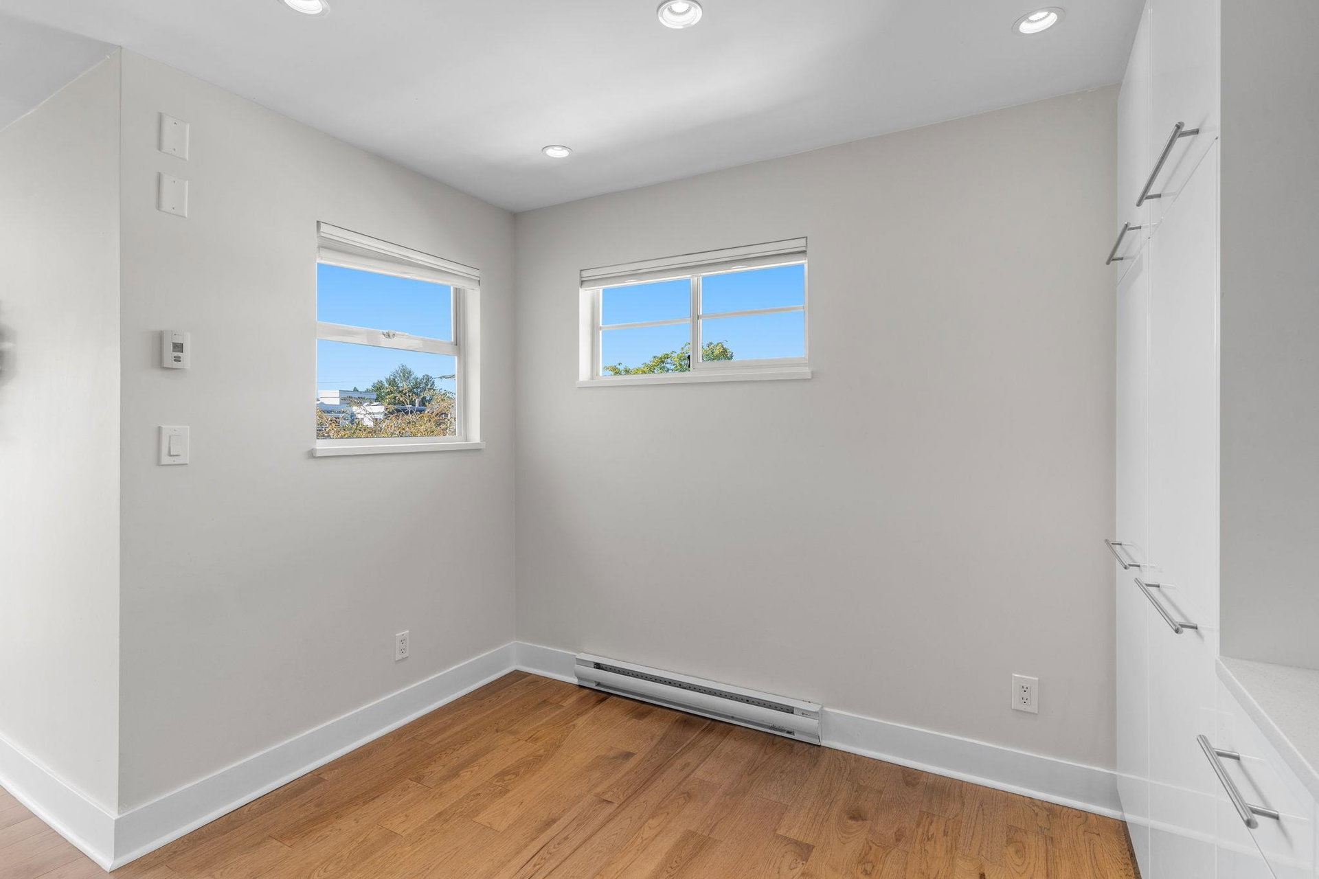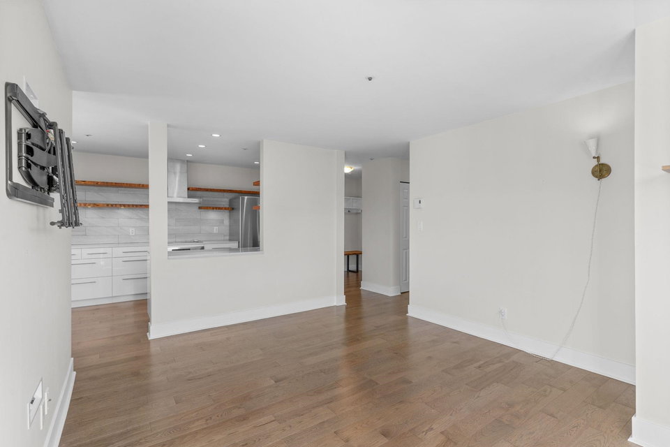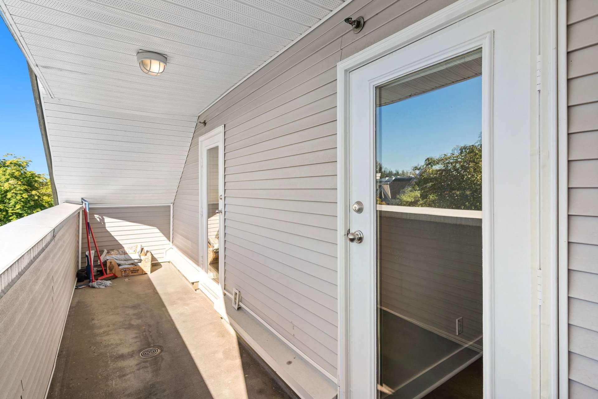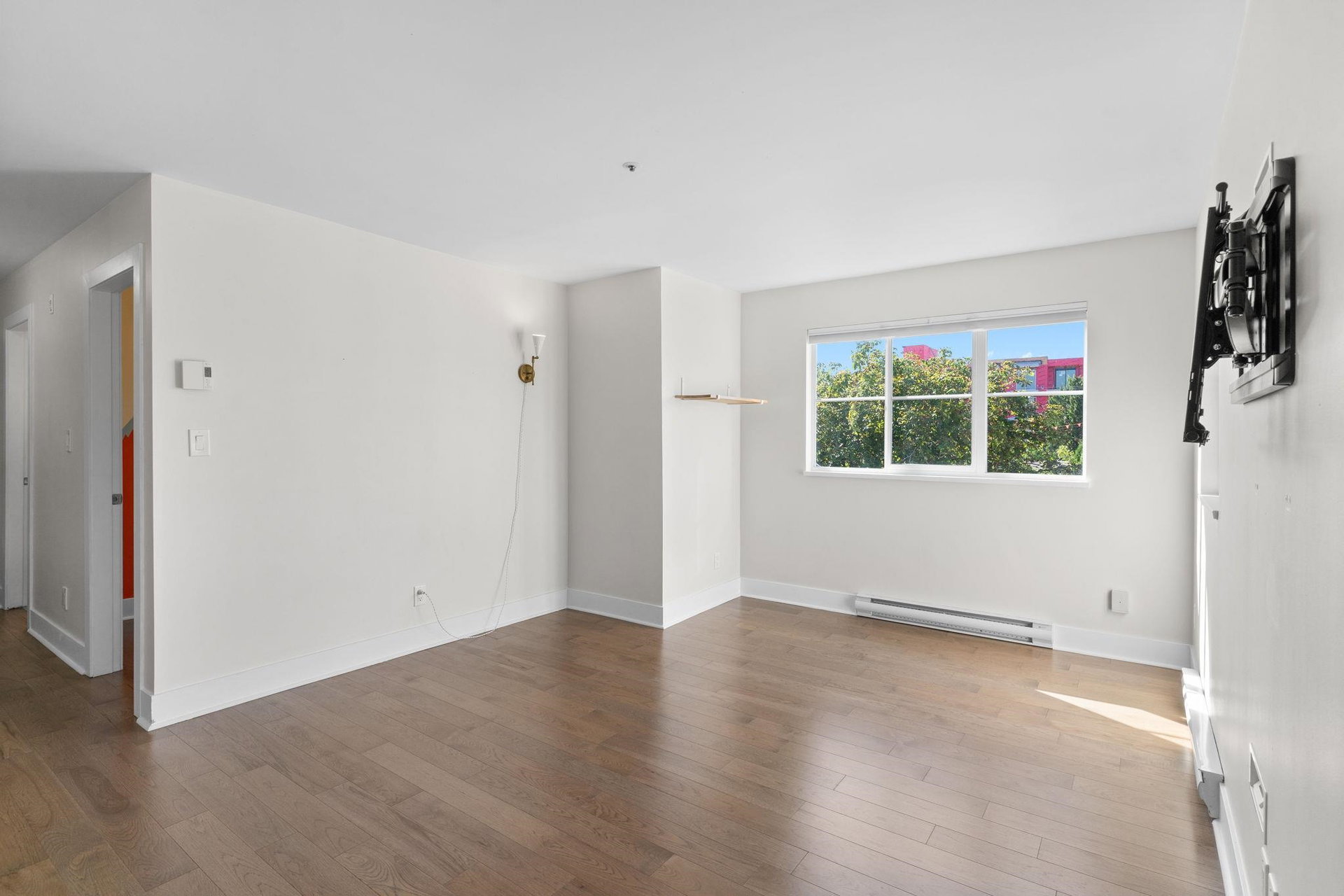 Presenting the Royal Victoria, an exceptional residence just steps from Commercial Drive. Ideally located one block from the SkyTrain and within walking distance to grocery stores, shopping, and coffee shops, this top-floor corner unit offers unparalleled convenience. Thoughtfully updated, the home features new paint, stainless steel appliances, sleek white cabinetry, custom reclaimed wood shelving, engineered hardwood, modern lighting, in-suite laundry, and a spacious covered balcony with captivating views. The well-maintained complex comprises only 14 units. The 767 sq/ft layout includes an open-concept kitchen, dining, and living area, one bedroom, a den (can be used as a second bedroom), and a full bathroom. Pets and rentals permitted!