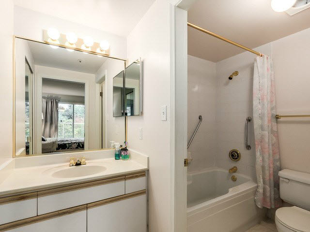 This beautiful 2 bedroom, 2 bath apartment features a south west view on a large balcony. Living area is bright, an open floor plan and vaulted ceilings. Features a fabulous court yard which is quiet and private. Amenities include swirl pool, in suite laundry and sauna/steam rooms. This unit is within walking distance of Douglas College, Coquiltam Center and the soon to be Evergreen Line. Call today for your own private showing. Open House Sunday September 20th, 2pm-4pm.