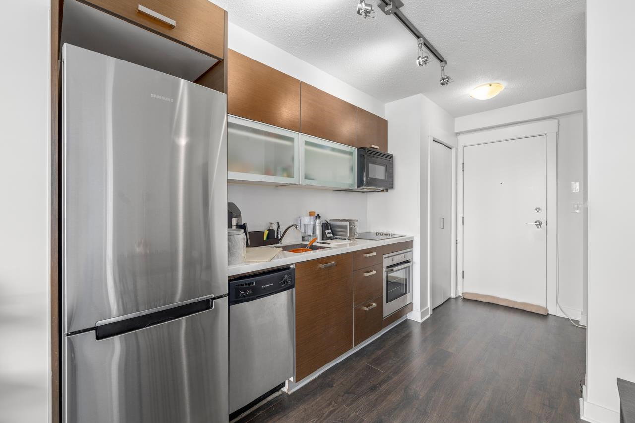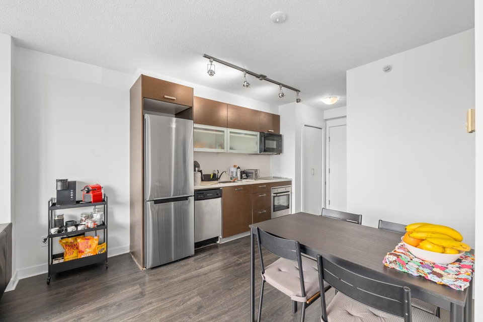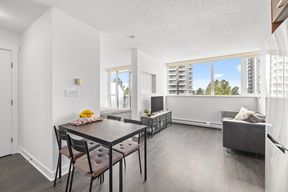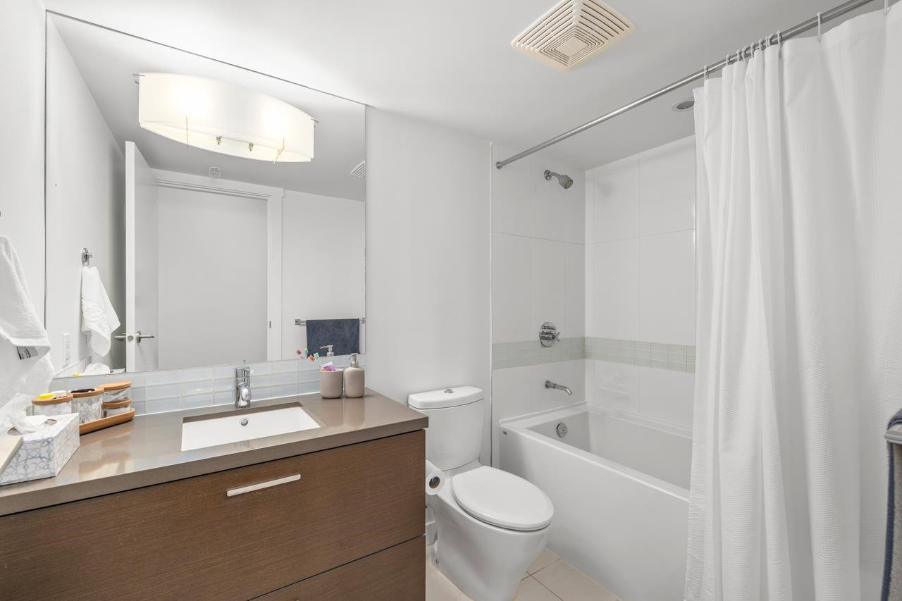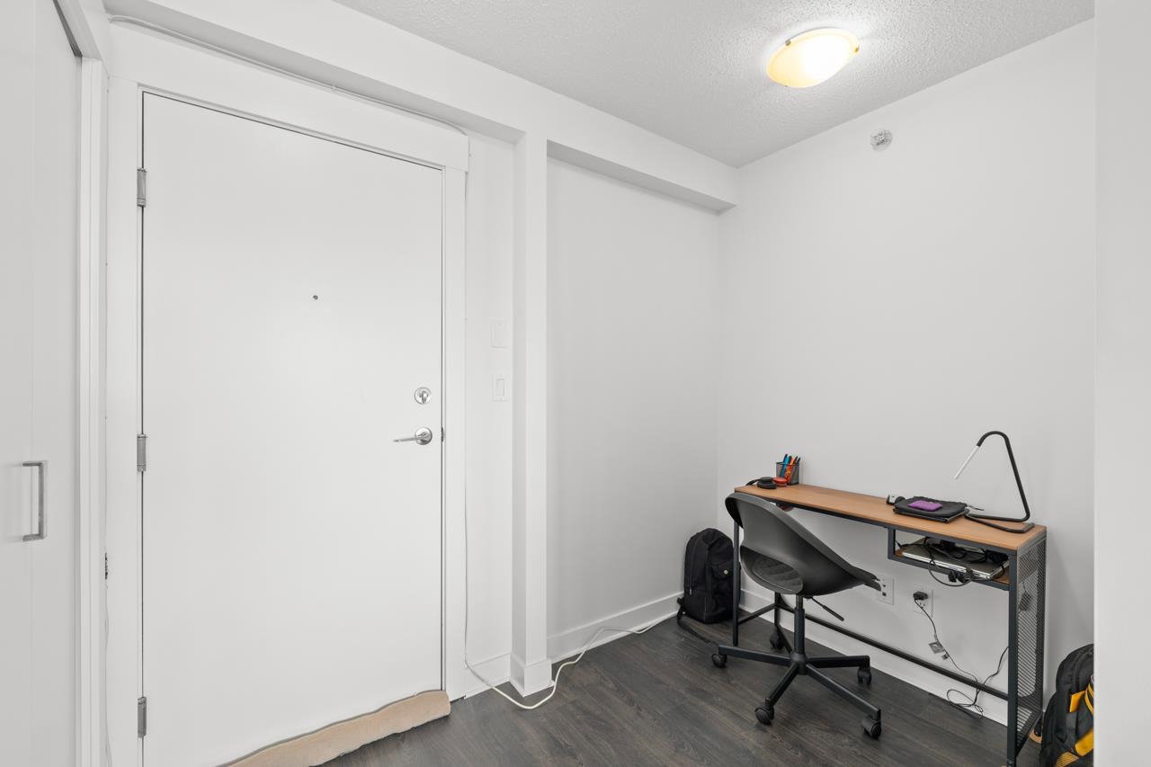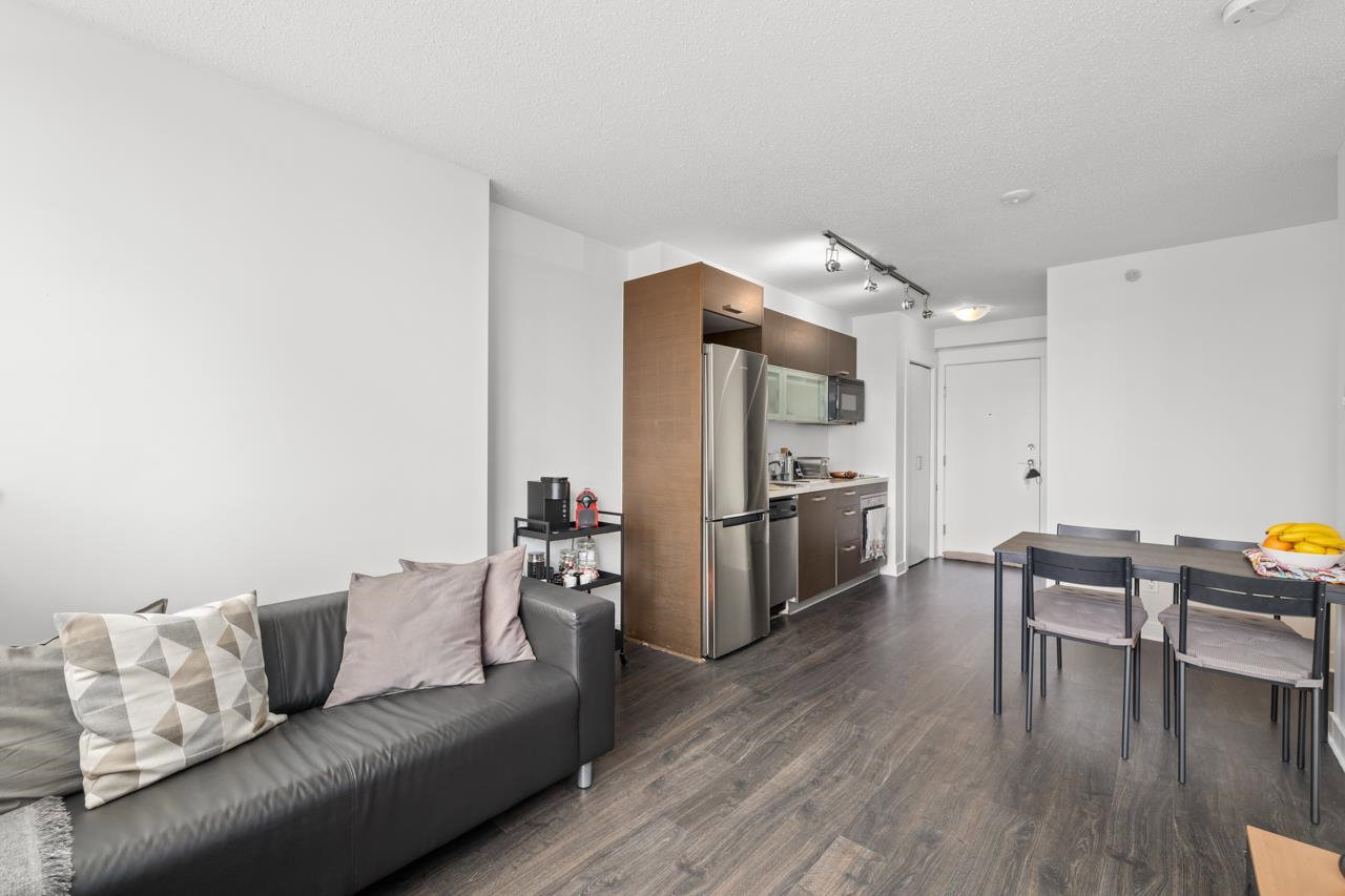 Welcome to Citypoint – built by Century Group. Perfect for couples, investors or first-time home buyers. This unit 1 bedroom and den boasts efficient layout, high quality cabinets, quartz counter-tops, stainless steel appliances, new laminate floors and mountain and city views. The building provides a convenient lifestyle. Walking distance Only a few minutes to, Gateway skytrain station, SFU, Surrey Central Mall, Chuck Bailey recreation center, banks, grocery shopping, Whalley athletic park and so much more right at your doorstep. Amenities include daytime management, 24 hour security, fitness facilities, social lounge, outdoor bbq. Cats and rentals allowed. 1 parking and 1 storage locker are included.