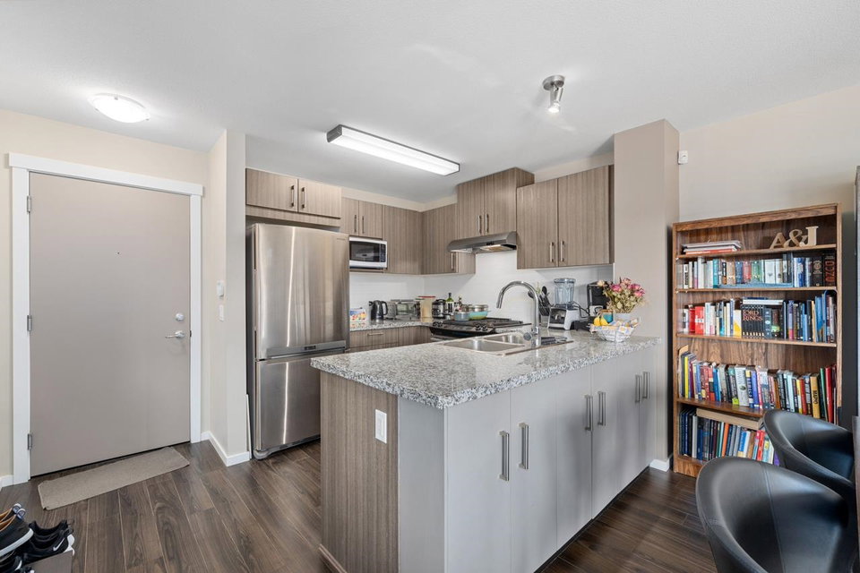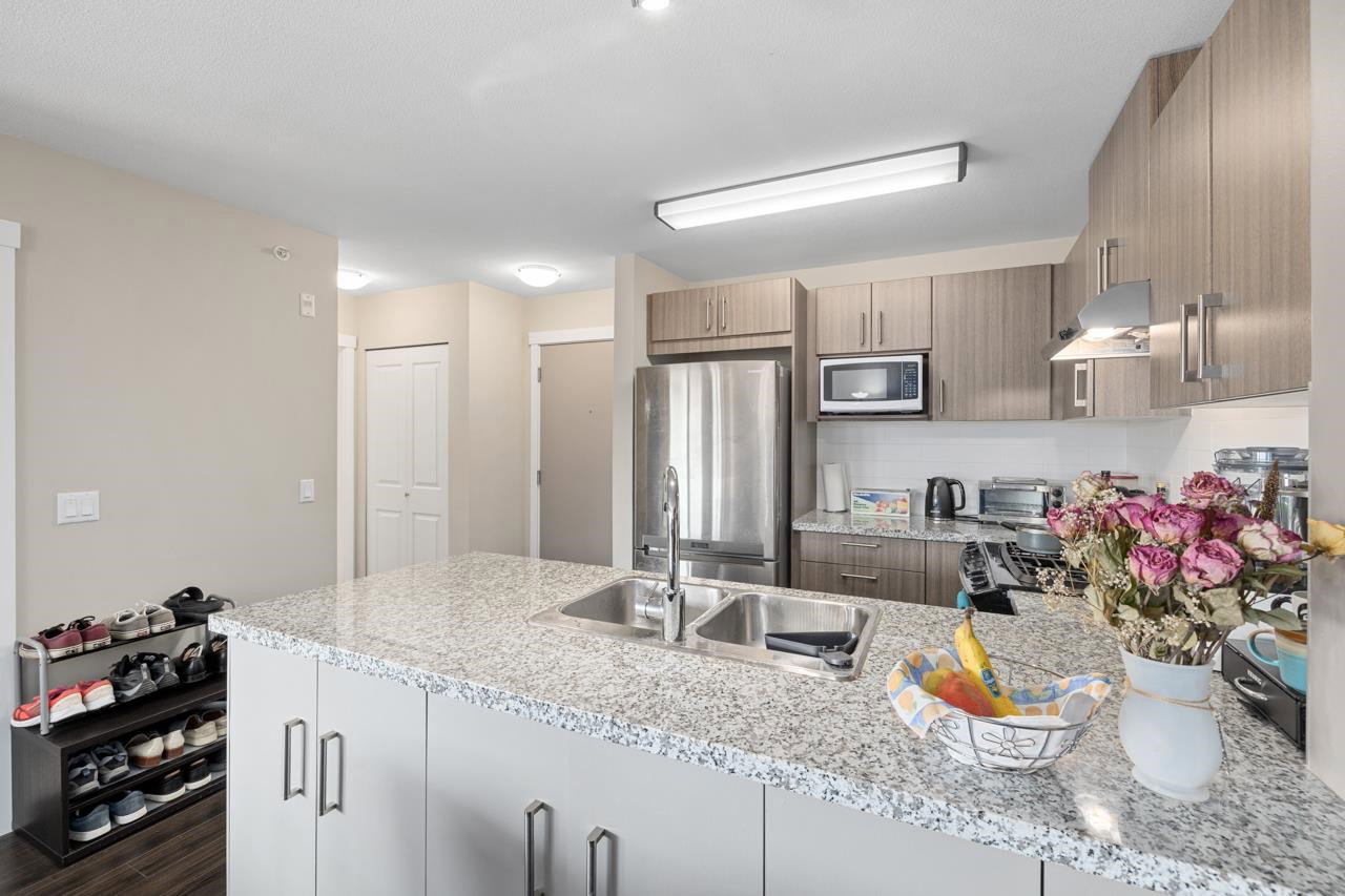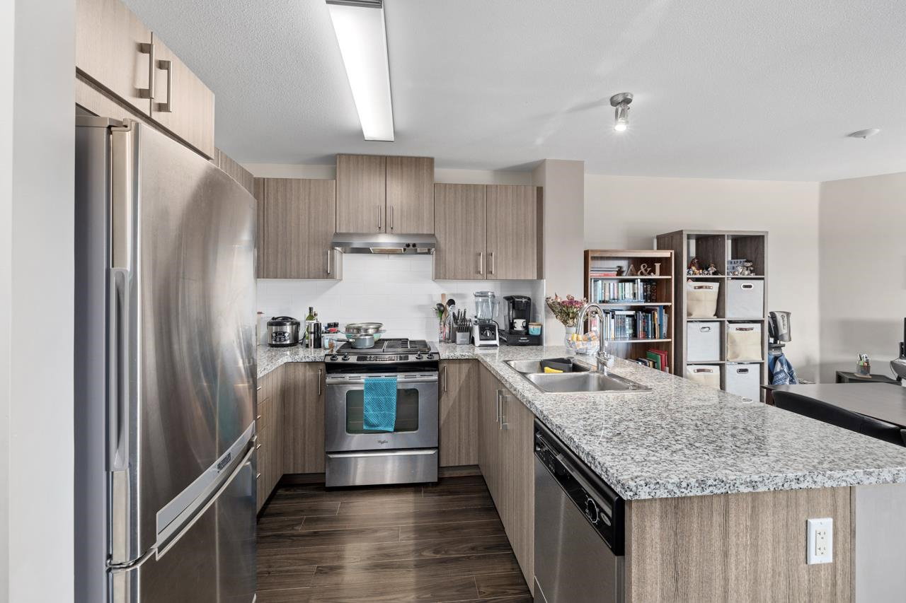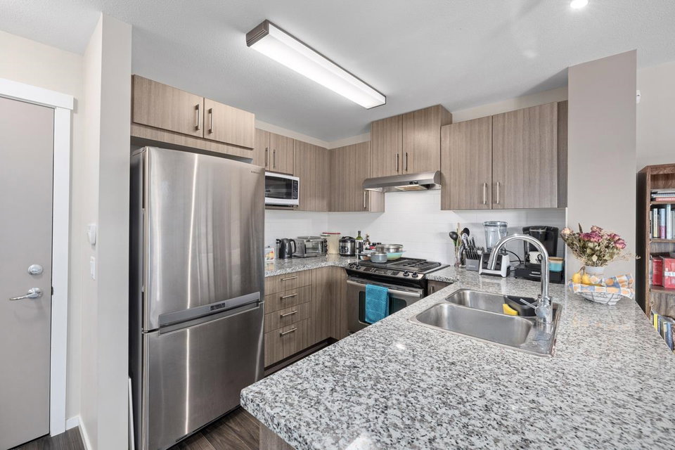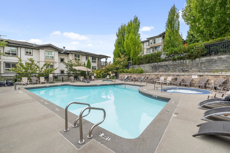 Welcome to TAMARACK! Rare top floor corner unit with 2 parking and 2 storage lockers. Kitchen features granite countertops, S/S appliances and gas range. Private balcony overlooking beautiful courtyard. Large Recreation Centre with gym, outdoor pool, hot tub, sauna, table tennis, games area & party room! Short walk to Town Centre Park, Douglas College, Lafarge Lake Skytrain Station, plus all the shops/restaurants surrounding Coquitlam Centre Mall.